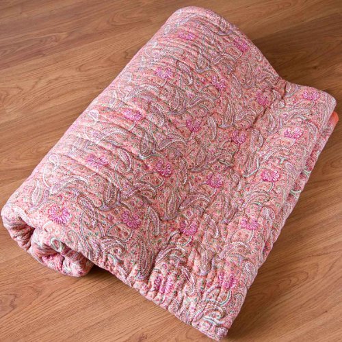 Made of cotton.Made in India.Measurements : eighty five" L X one hundred and five" W.Hand block printed quilt from Jaipur, Rajasthan. In a conventional paisley print, this peach Jaipur quilt has a excellent looking two-toned piping all around. Measuring eighty five x one zero five inches, it has a different design on either side so that you may swap sides as you like. Its extremely gentle weight and opulent heat make for utmost alleviation..